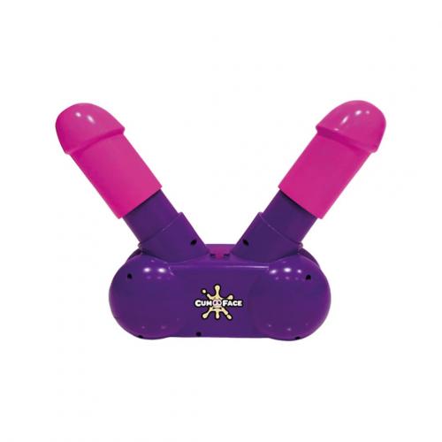 Das Cum Face-Spiel enthält einen Halter mit 2 Penissen. Füllen Sie das Reservoir unten mit irgendeiner trinkbaren Flüssigkeit. 2 Spieler fordern einander heraus und sie sitzen jeweils vor einem der Penisse. Nach dem Startsignal fangen die Spieler an, die Penisse zu