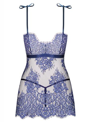 Verführen Sie Ihren Partner mit diesem wunderschönen Spitzen-Babydoll von Obsessive! Dieses Babydoll hat eine weiche blaue Farbe und hebt Ihre Kurven wunderbar hervor. Das Modell fällt lose um den Körper und ist vorne offen. Das Material ist für eine perfekte Passform elastisch und komplett durchsichtig. Dieses Babydoll wird im Nacken gebunden. Der passende sexy Tanga vervollständigt diesen Look.