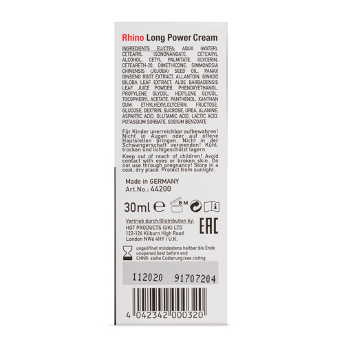 RHINO Long Power Cream wirkt der Empfindlichkeit des Penis entgegen und hilft so, die Ejakulation hinauszuzögern